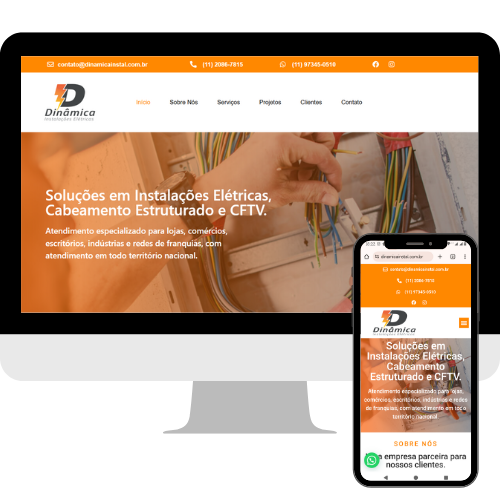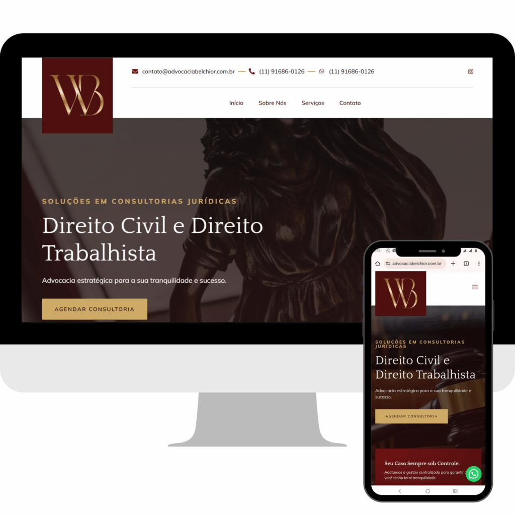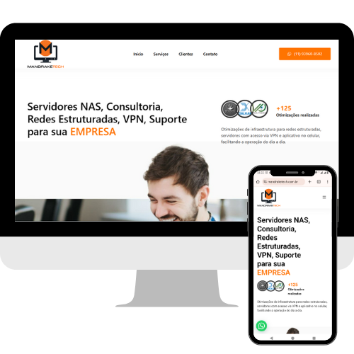 Criamos sites modernos, visualmente atraentes e, o mais importante, focados em conversão. Cada projeto é responsivo, garantindo uma experiência perfeita em qualquer tela (desktop ou mobile).